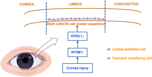 Northwestern researchers identified Interferon induced transmembrane protein 1 (IFITM1) as a protein that promotes LESC/eTA proliferation and expansion, while Ovo like zinc finger 1 (OVOL1) acts as a negative regulator of epithelial cell proliferation. Methods are provided for increasing IFITM1 expression or decreasing OVOL1 expression in the limbal epithelium, which activates LESCs and expands the stem/eTA population to enhance corneal repair. This modulation can be achieved using therapeutic agents, such as adeno-associated virus (AAV) vectors engineered to express IFITM1 or deliver siRNAs/shRNAs to reduce OVOL1, typically administered topically to the ocular surface.